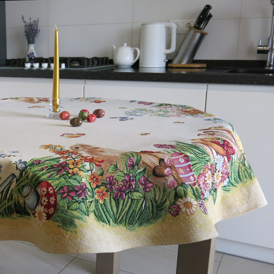Cotton tablecloths for round square and rectangular tables in different colors, styles, and...
