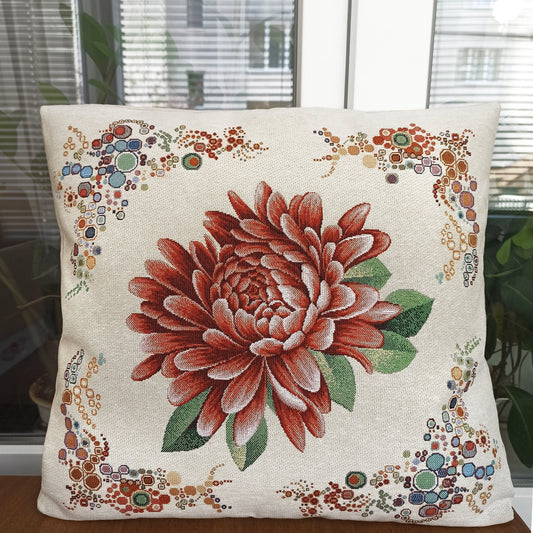 Floral Cushion Cover Cotton Decorative Pillowcase Farmhouse Pillow Cover Dahlias