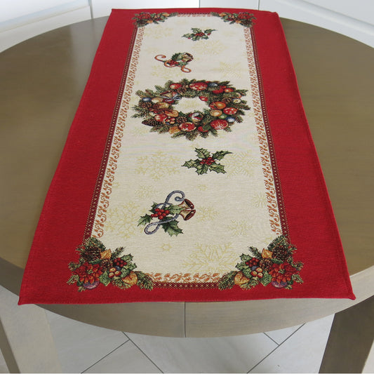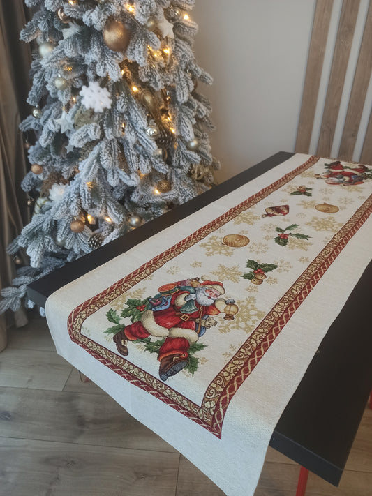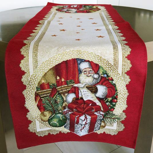 Table Runners Red Christmas Golden Lurex Fabric Tapestry Rectangular with Santa