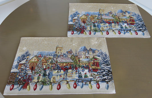 Placemats Christmas Holiday Set of 2 Glitter with golden Lurex Christmas Old Square
