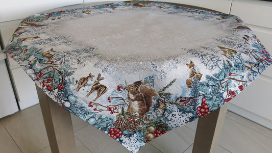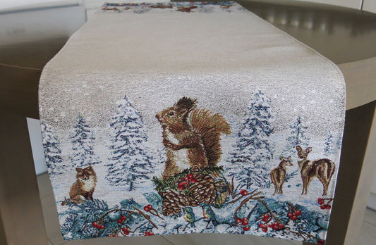 Table Runner Christmas Silver Threads Fabric Tapestry Rectangular Napperon Fairy Forest