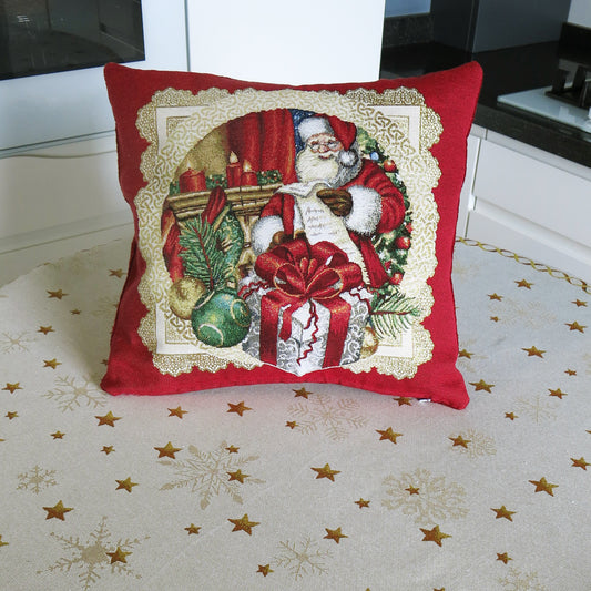 Cushion Cover Christmas Red Decorative Pillowcase with Santa and Gold threads