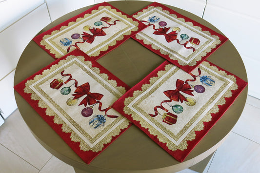 Christmas Placemats Set of 2 Red Glitter with Golden Threads