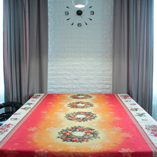 Red Christmas Tablecloth with Santa, Golden thread Tapestry Fabric Xmas Tablecloths Old Pattern Elegant Gold Table cloth Christmas 54X116in
