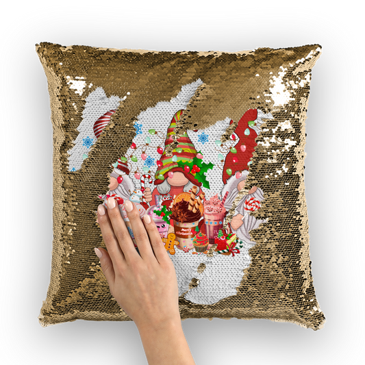 Christmas Sequin Cushion Cover with Chrisrmas Gnomes