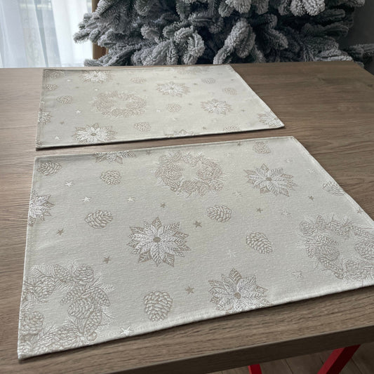 Placemats Set of 2 Christmas Ivory with Silver threads Christmas Holiday Table mats