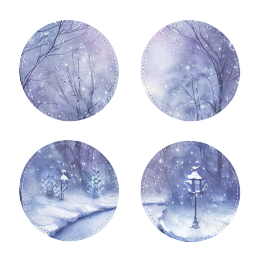 Coasters Pack of Four with Winter Forest Imeges Leather Waterproof and Heat-resistant