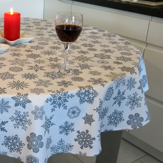 Round Christmas Tablecloth White Gray Waterproof Fabric Dirt resistant Table Cover