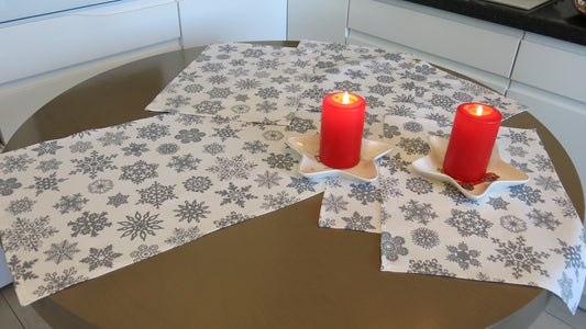 Christmas Table Runner White Decorative Waterproof Rectangular with Gray Snowflakes