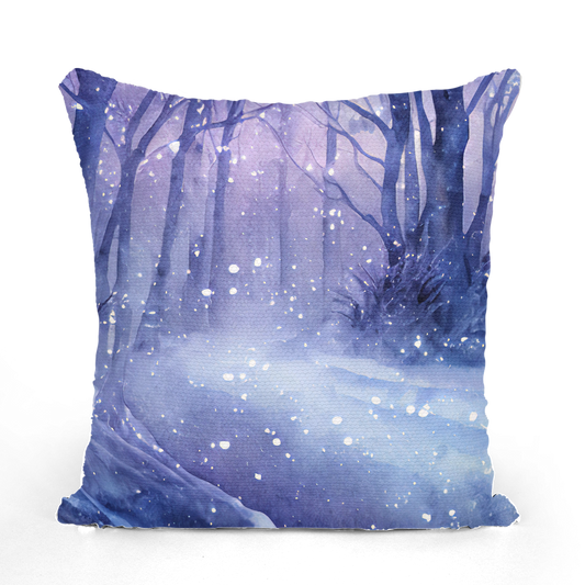 Sequin Cushion Cover Winter Forest 16" X 16" (40CM X 40CM) Throw Pillows