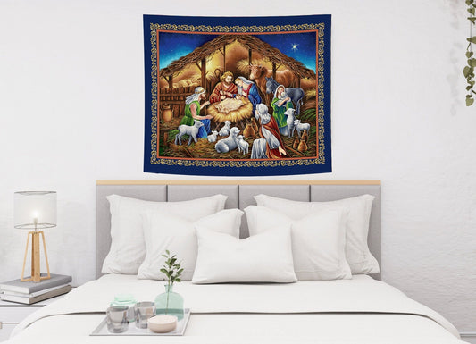 Nativity Art Wall Decor, Christian icon, Christmas Tapestry Wall hanging Art with Religious icon