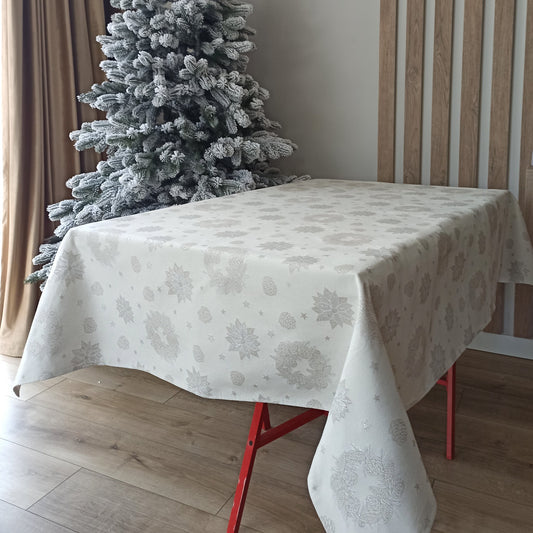 Tablecloth Christmas White Silver Fabric Holiday Custom X-mas Table Cover for Square Rectangle Table