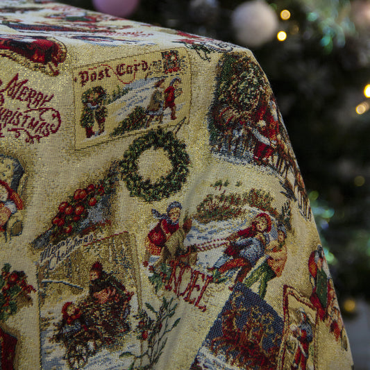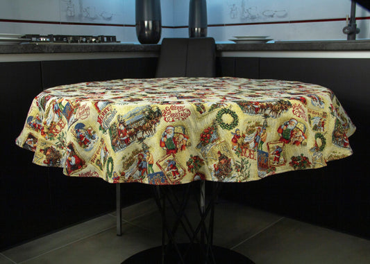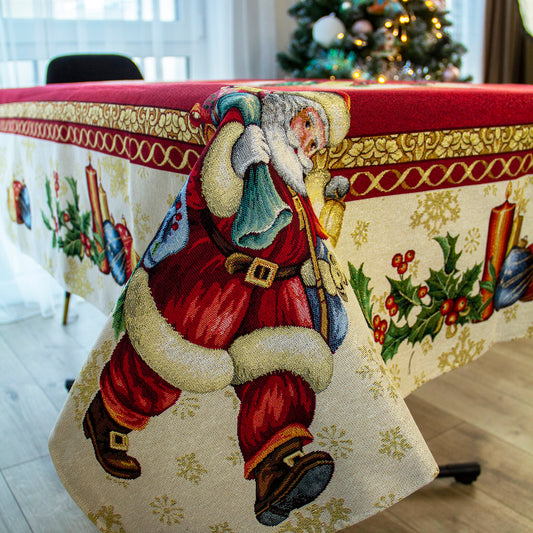 Gold Christmas table cloth, Tapestry fabric tablecloths for Christmas with Golden threads, custom Christmas table covers with Santa and Old Pattern