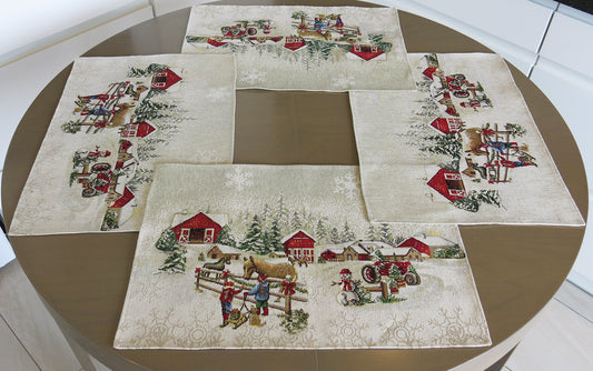 Placemats Christmas Holiday Set of 2 Glitter with gold Lurex Winter Snowmen