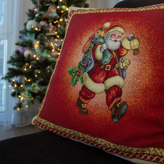 Christmas Cushion Cover Red Decorative Pillowcase with Santa and Gold threads