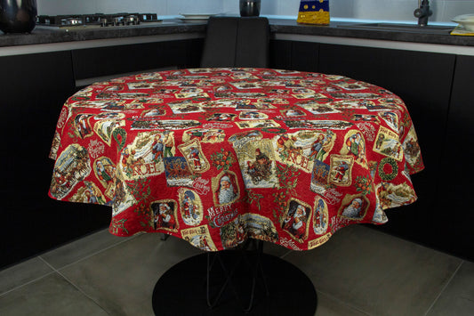 Red Christmas Round Tablecloth Santa X-mas tablecloth for Round Table