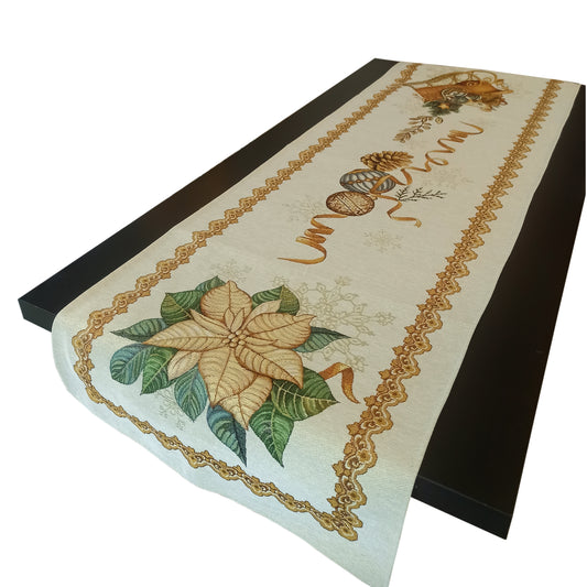 Christmas Table Runner Golden Threads Lurex Fabric Tapestry Rectangular Old Pattern Napperon