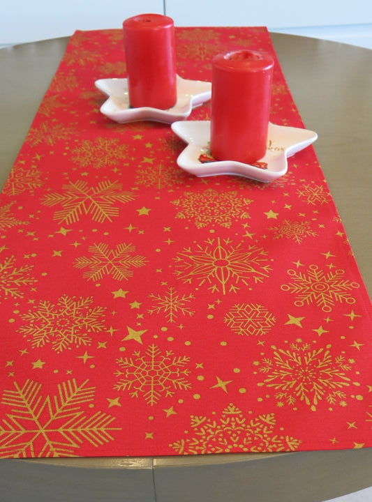 Table Runner Decorative Waterproof Rectangular Christmas Red with Snowflakes