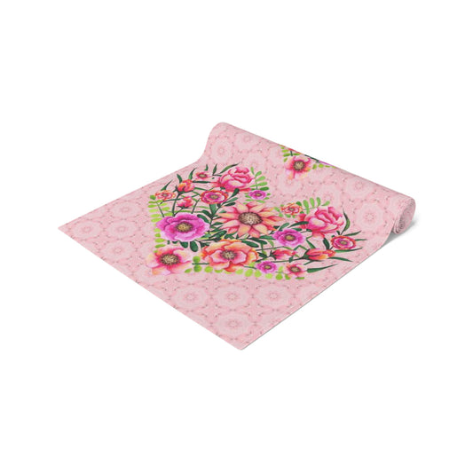 Table Runner Pink with Floral Heart Valentine's Day Gift for woman