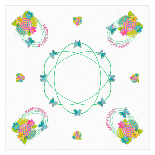 Tablecloth Easter Square Cotton with Eggs Flowers Butterfly - Happy Easter