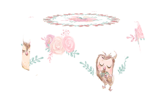 Owl themed tablecloths for Square or Round Table with Pink Flowers White