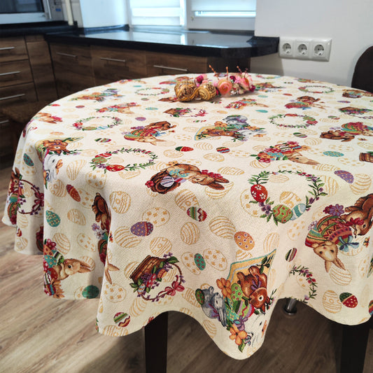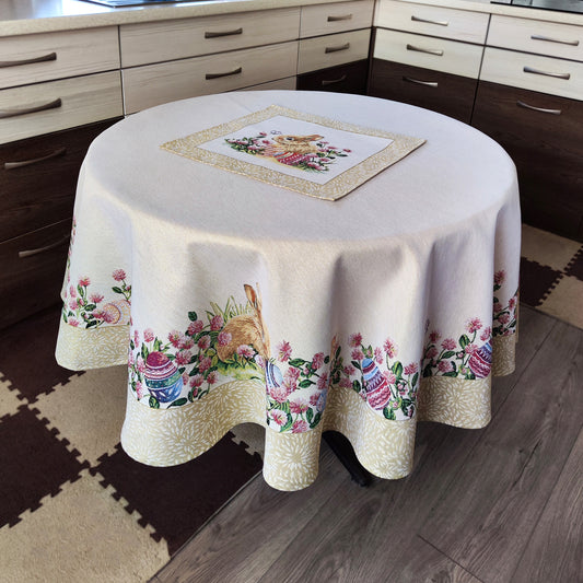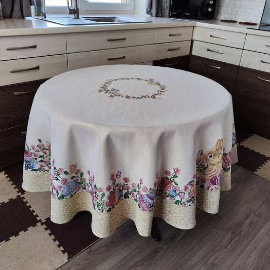 Round Easter Tablecloth Tapestry Floral Cute Bunny Table cloth for round table