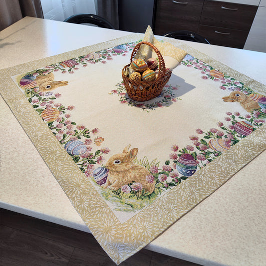 Easter Tablecloth with Eggs Flowers and Golden thread small Square table cloth
