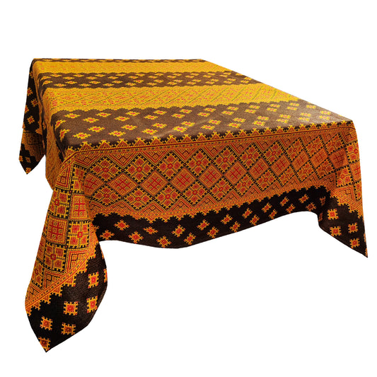 Ukrainian Tablecloth with National Embroidery Ornament Rectangular Brown and Yellow