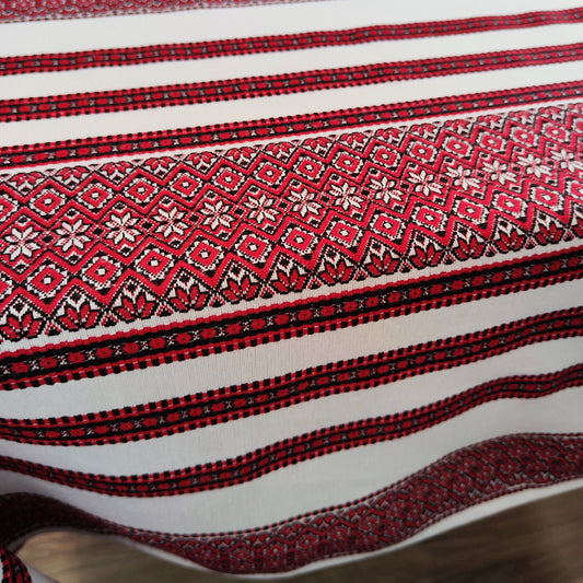 Ukrainian Tablecloth with National Embroidery Ornament Rectangular White and Red
