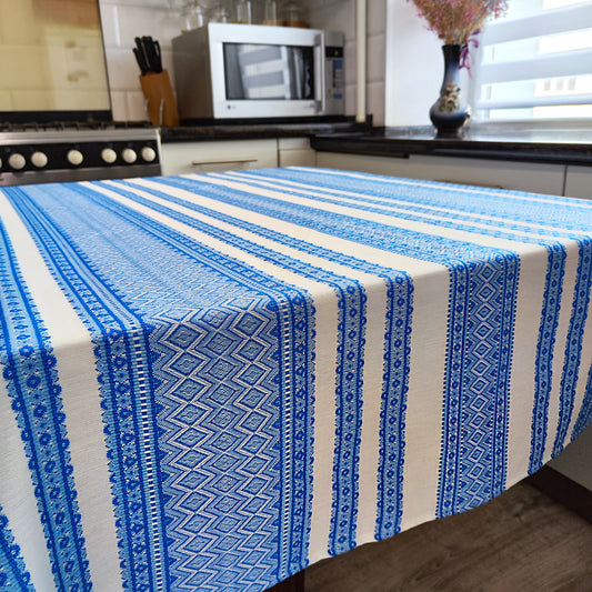 Ukrainian Tablecloth White Fabric National Style Rectangular Blue and White Ornament