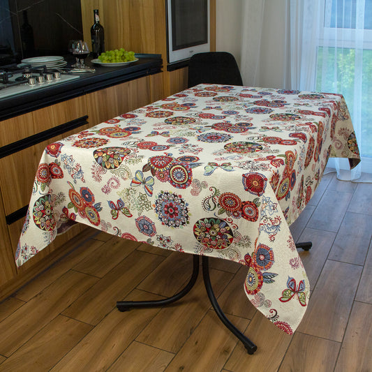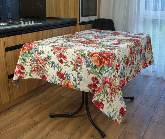 Tablecloth Rectangular Floral Ivory Background Cute Tapestry Table linen with Flower