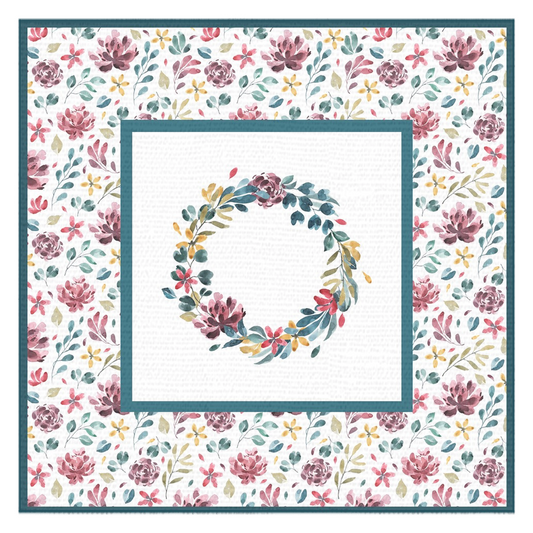 White Cloth Tablecloths Cotton with beautiful watercolor flowers and green bandelet