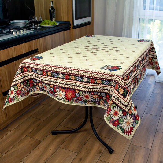 Fabric Tablecloth Centerpiece Rectangular Floral Ivory with Flower Cute Tapestry Table linen