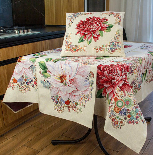 Rectangle Floral Tablecloth Centerpiece Dahlias Cute Tapestry Fabric Table linen Tapestry