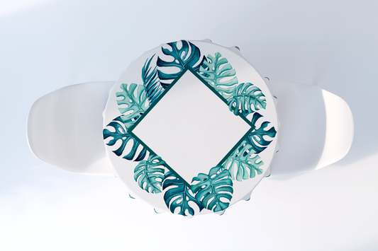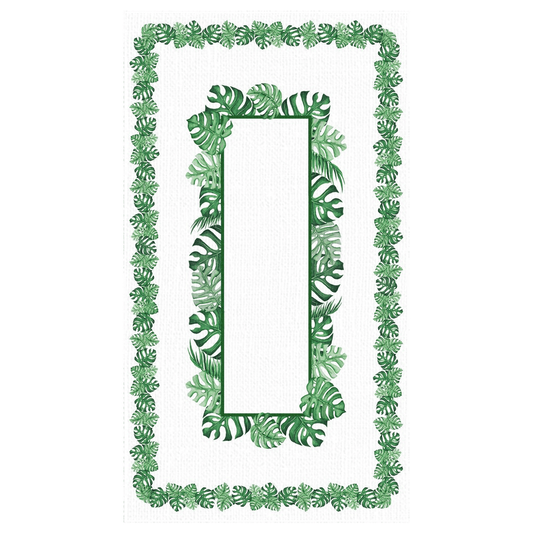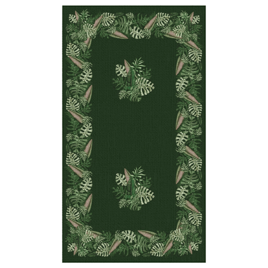 Cotton Tablecloths square "Monstera Green" White tablecloth with a green tropical pattern.