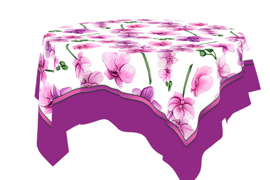 Сotton Tablecloth in Pink and Burgundy with Orchid Flowers 58x58 inches