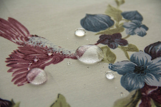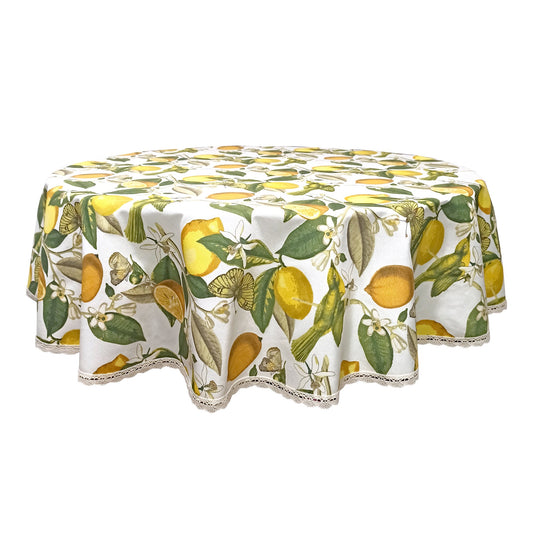 Round Tablecloth Fabric Summer Waterproof Cotton with Teflon coated Yellow Lemon Birds and Butterflies