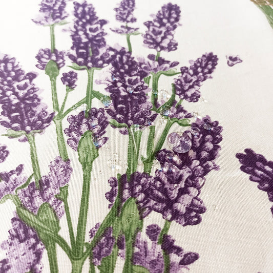 Tablecloth Waterproof Natural Fabric Table Cover White with Lavender Flowers