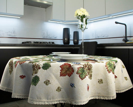 Round Tablecloth with Grape Figs Fruits and Lace Tapestry Table linen